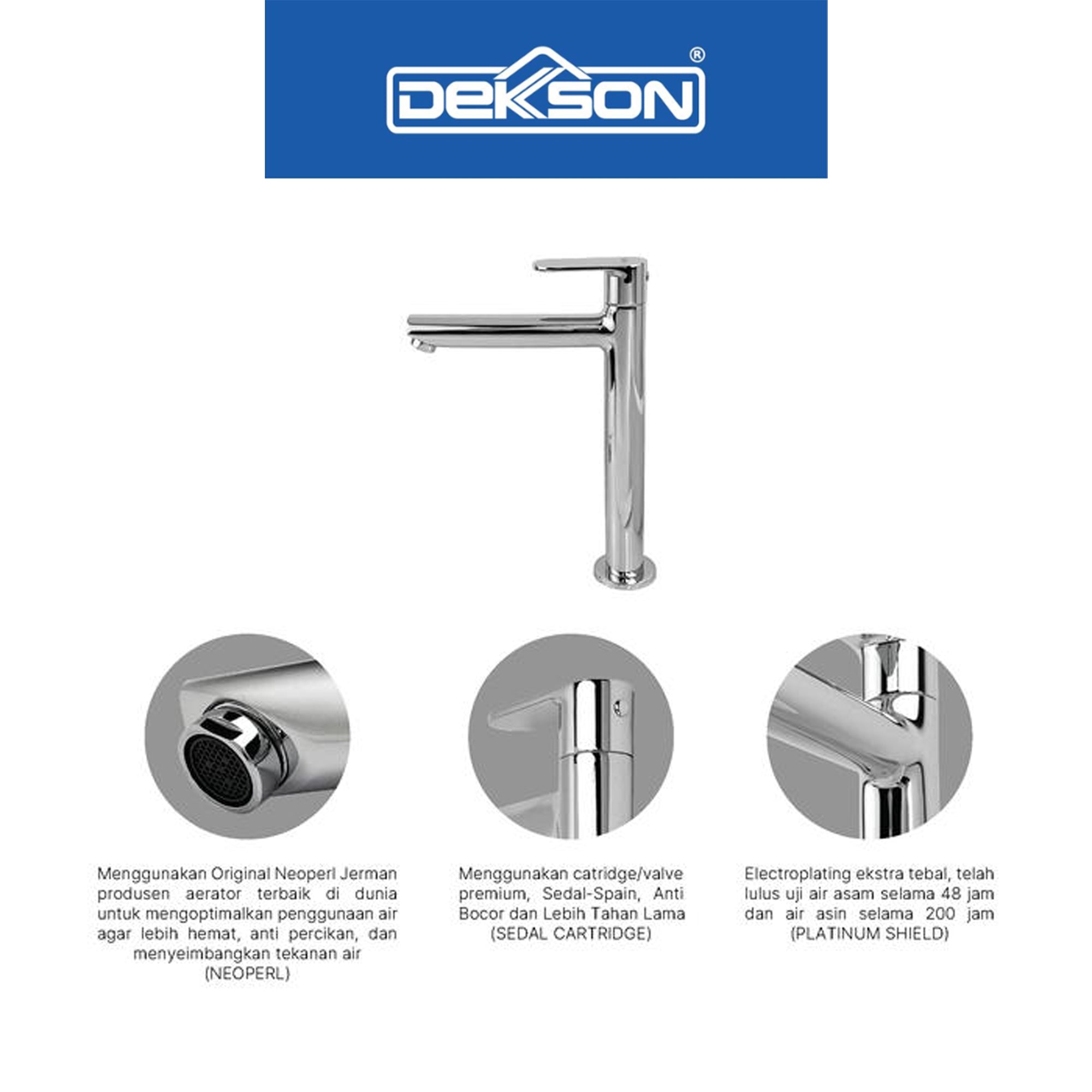 • SEDAL CARTRIDGE SPAIN TECHNOLOGY Menggunakan cartridge/valve premium dari Sedal-Spain, anti bocor dan lebih tahan lama.