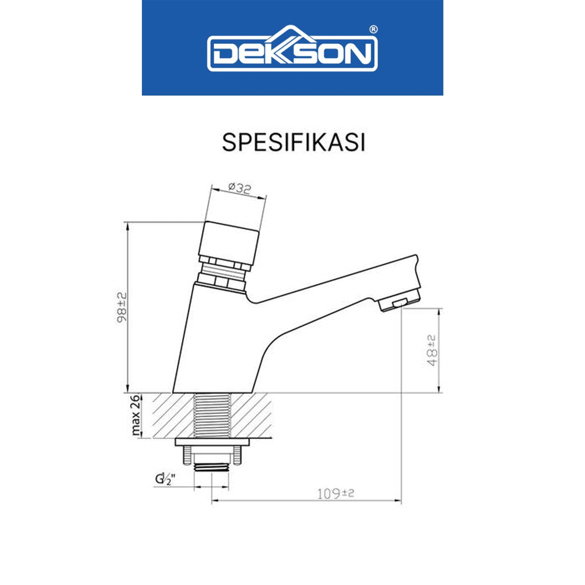 Basin Tap Dekkson SCB D8001 Self Closing Push Button Keran Otomatis Chrome Plated