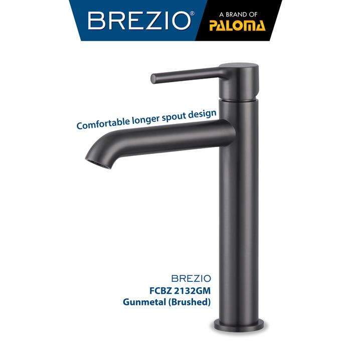 BREZIO Keran Wastafel Tinggi Cuci Tangan Kran Air Panas Dingin Bambu Sedang Tall Medium Faucet Basin Mixer Hot Cold Lavatory Kamar Mandi Chrome Krom Silver Gunmetal Grey Abu Matte Black Hitam Brushed Gold Emas FCBZ 2132 2132CP 2132GM 2132MB 2132BG