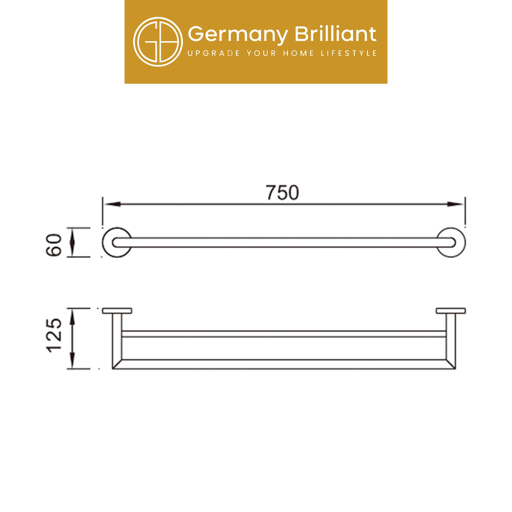Double Towel Bar Germany Brilliant GBSS2002-75MP Rak Handuk Kamar Mandi