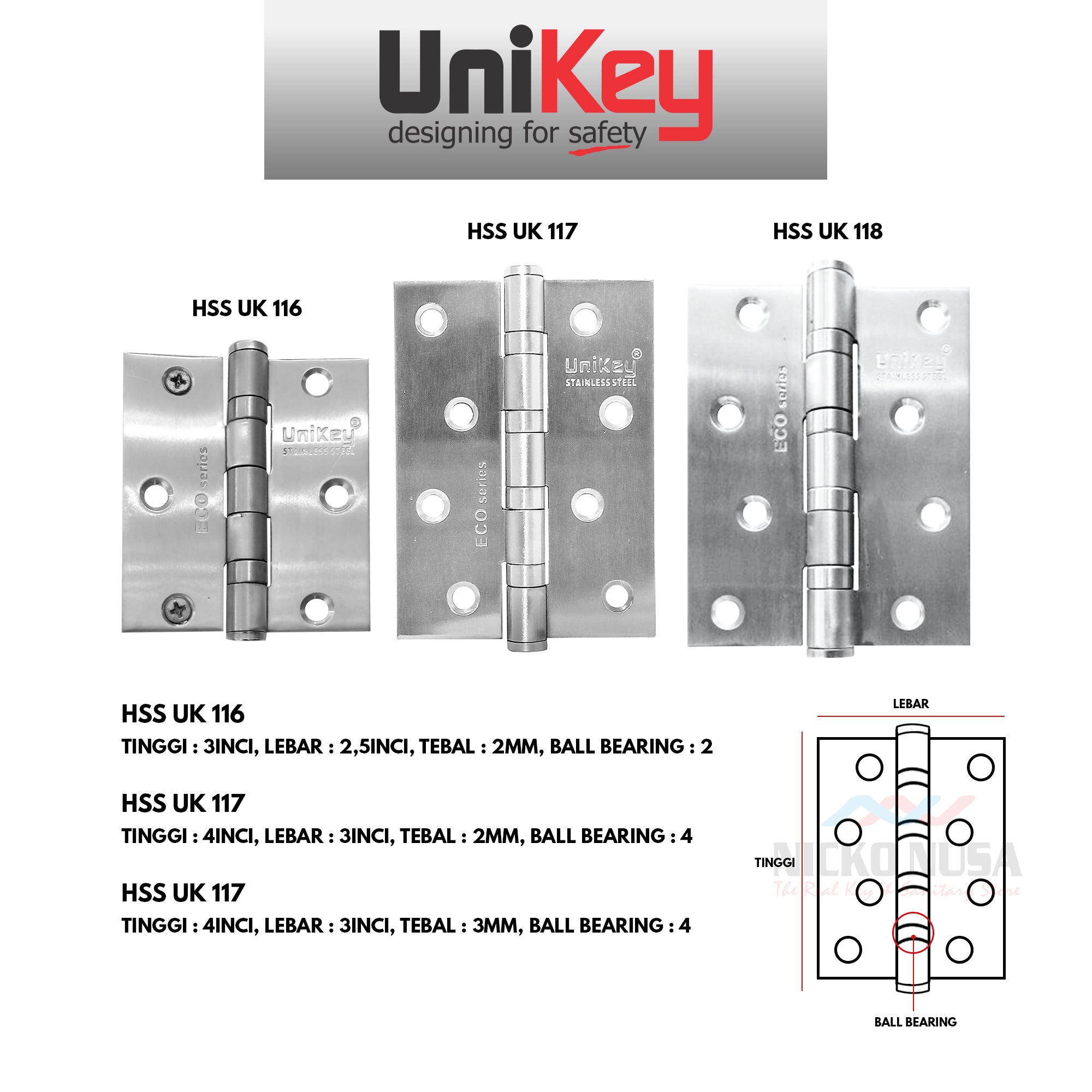 Engsel Unikey HSS UK 116 117 118 Engsel Pintu 3INCH 4INCH Engsel Jendela Kupu-Kupu