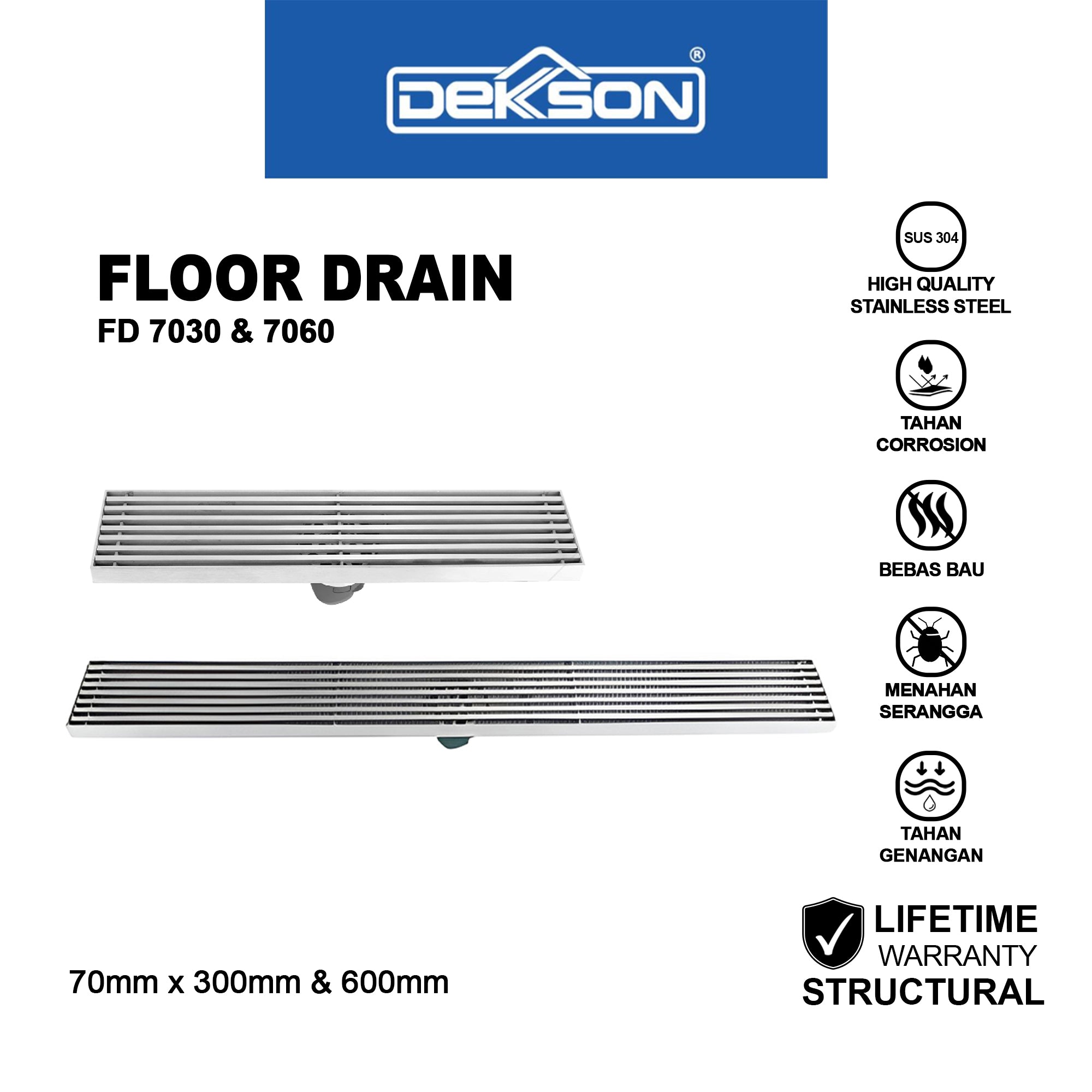 Floor Drain Dekkson FD 7030 7060 Saringan Air Kamar Mandi Toilet Garis Kotak Panjang 300mm 600mm Stainless Saringan Selokan WC