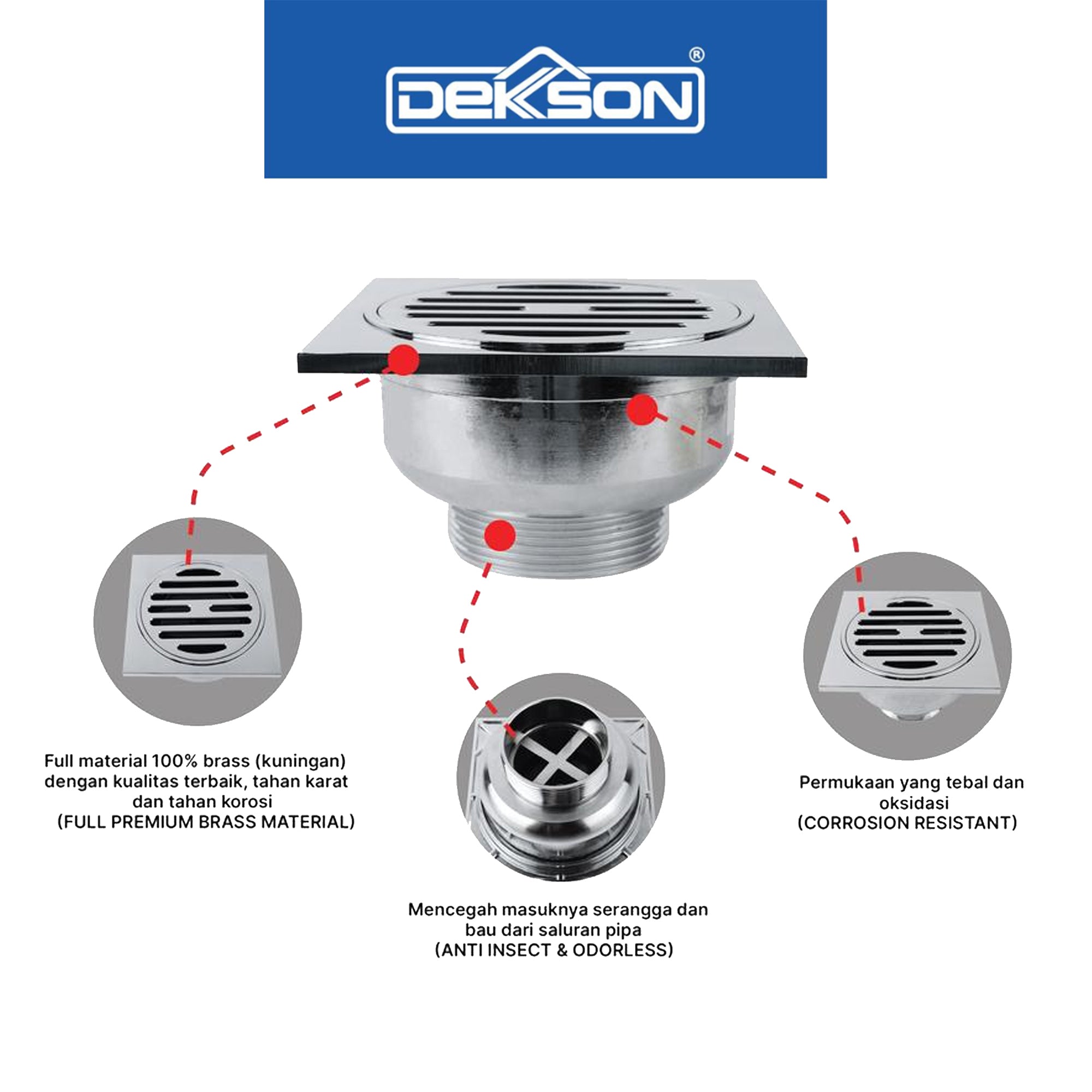 Floor Drain Dekkson FD DKS 8103 BR CP Lubang Saringan Air Lantai Kamar Mandi Anti Korosi
