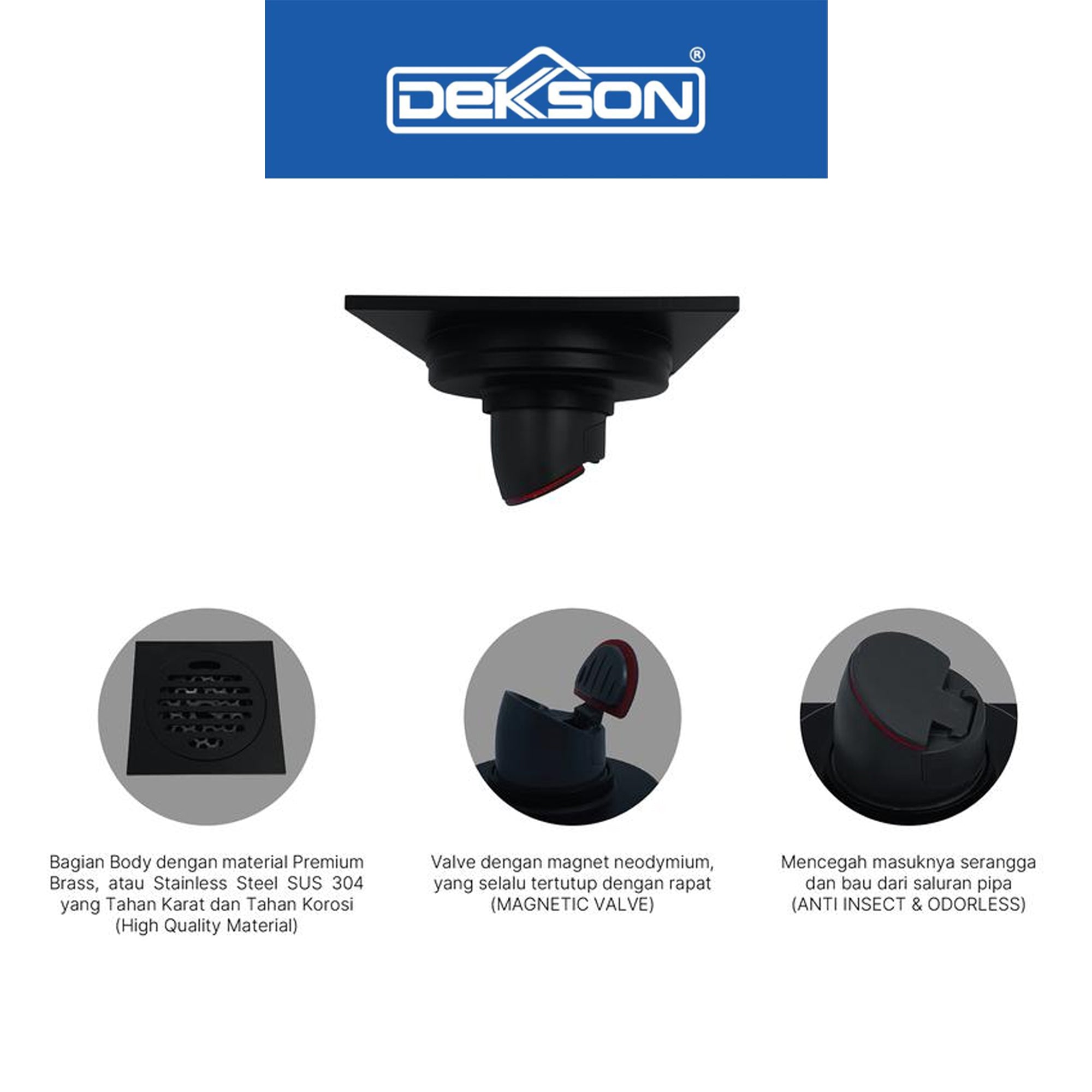 Floor Drain SUS 304 Dekkson FD 9102 Saringan Stainless Drainase Lantai Pembuangan Air Warna Stainless Gunmetal Hitam SS 10 Cm