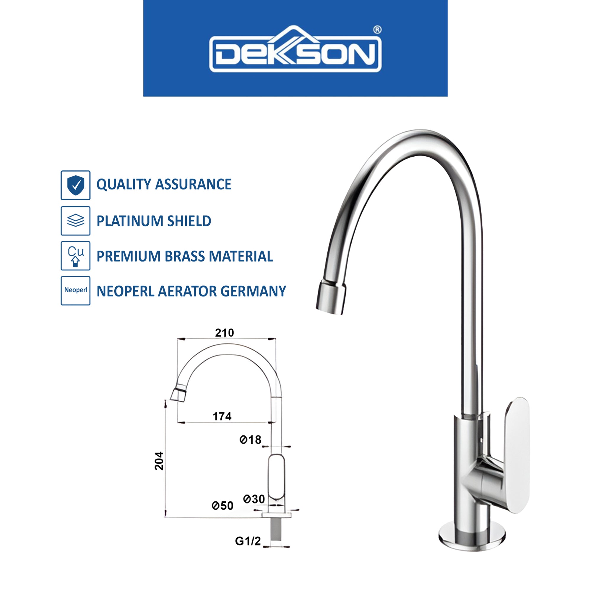 Kitchen Tap Deck Dekkson KTD 8532 BR CP Kran Air Kuningan Dapur Bak Sink Cuci Piring Faucet Mixer Dingin Panas Auto Stop Kitchen Sink Tap