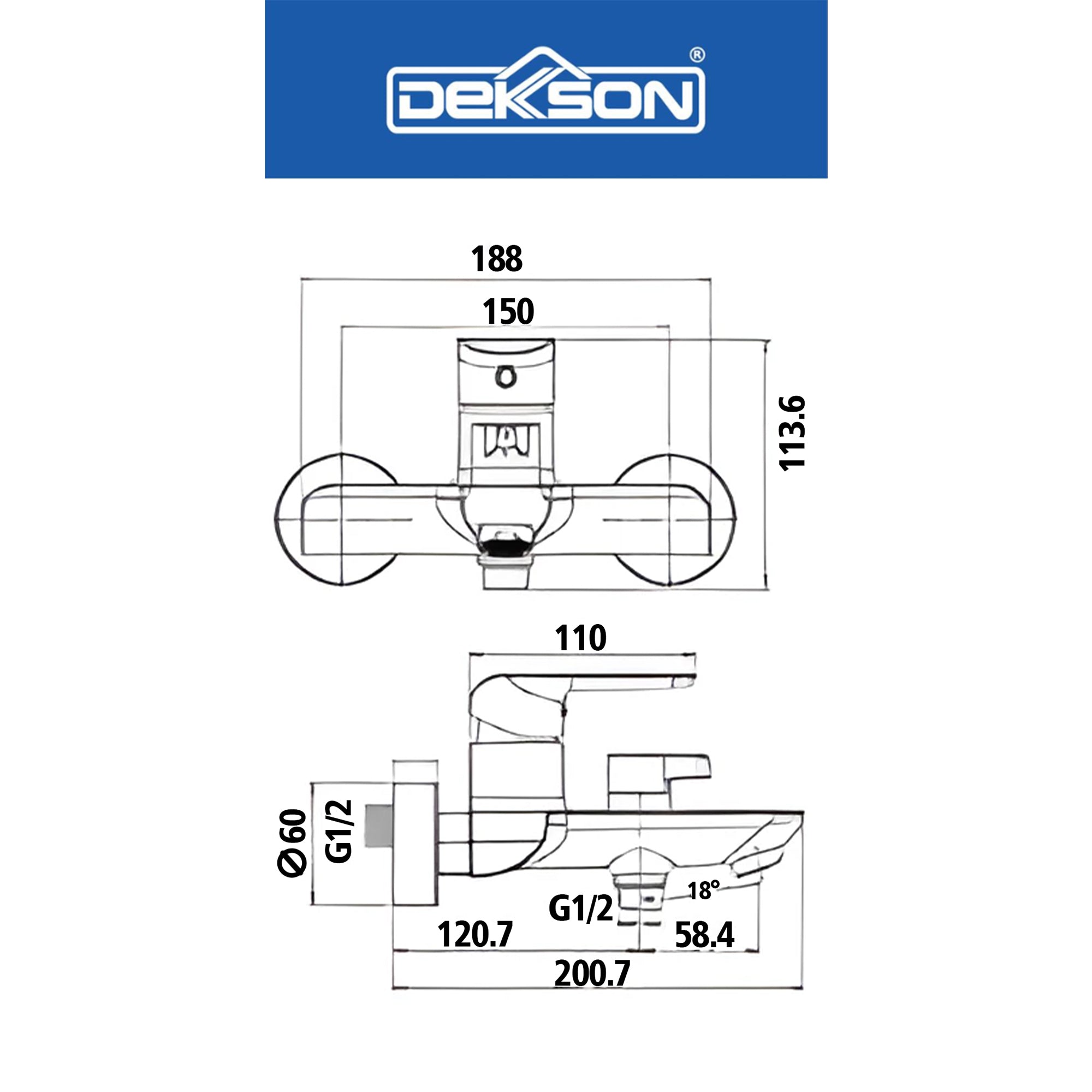 Kran Shower Bathtub Mixer 2 Function Dekkson BBM 1111 Keran Shower Panas Dingin Sower Kran Bathub Mixer