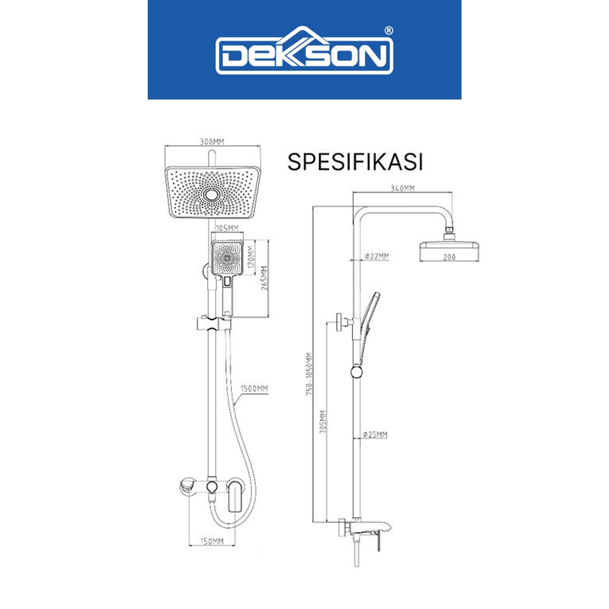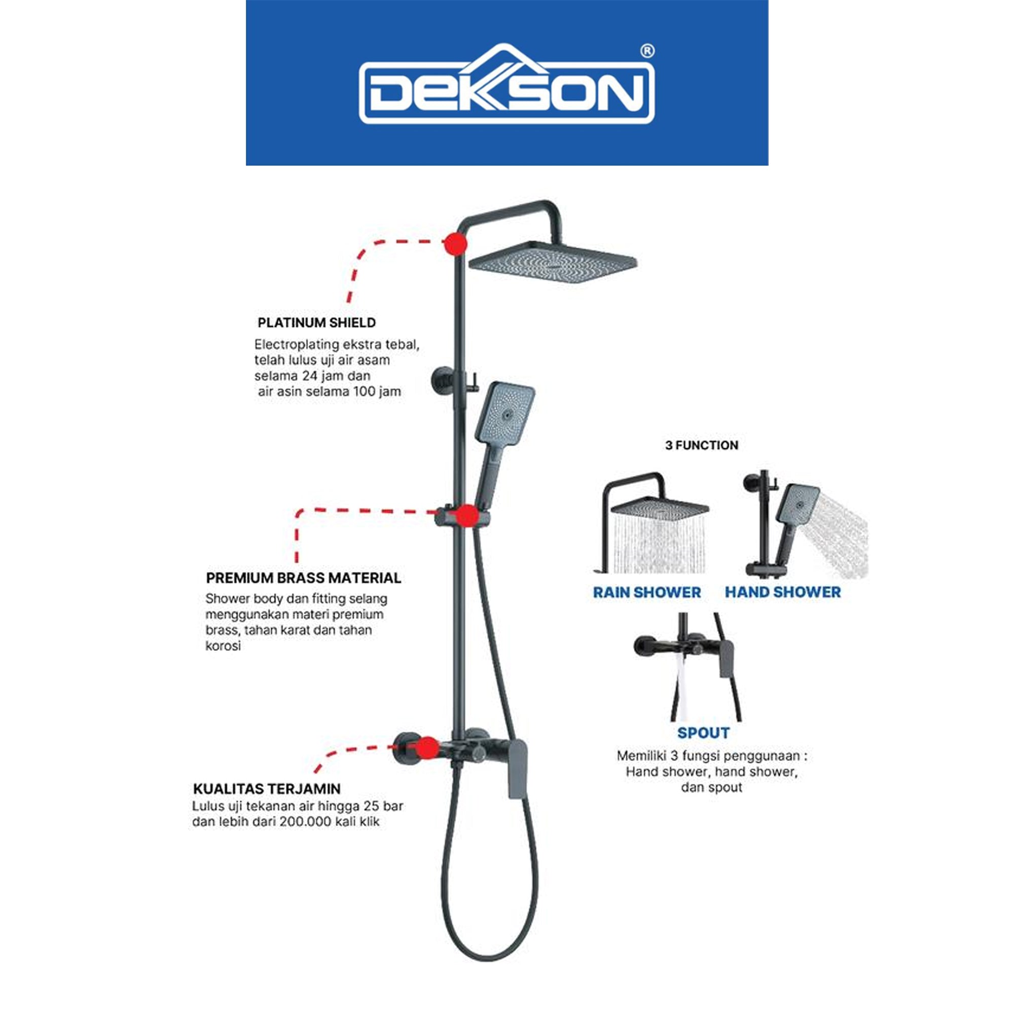 Shower Set 3 Function Dekkson SS 7828-3 CP MB Shower Tiang Set Column Mandi Keran Kran Panas Dingin Chrome Black