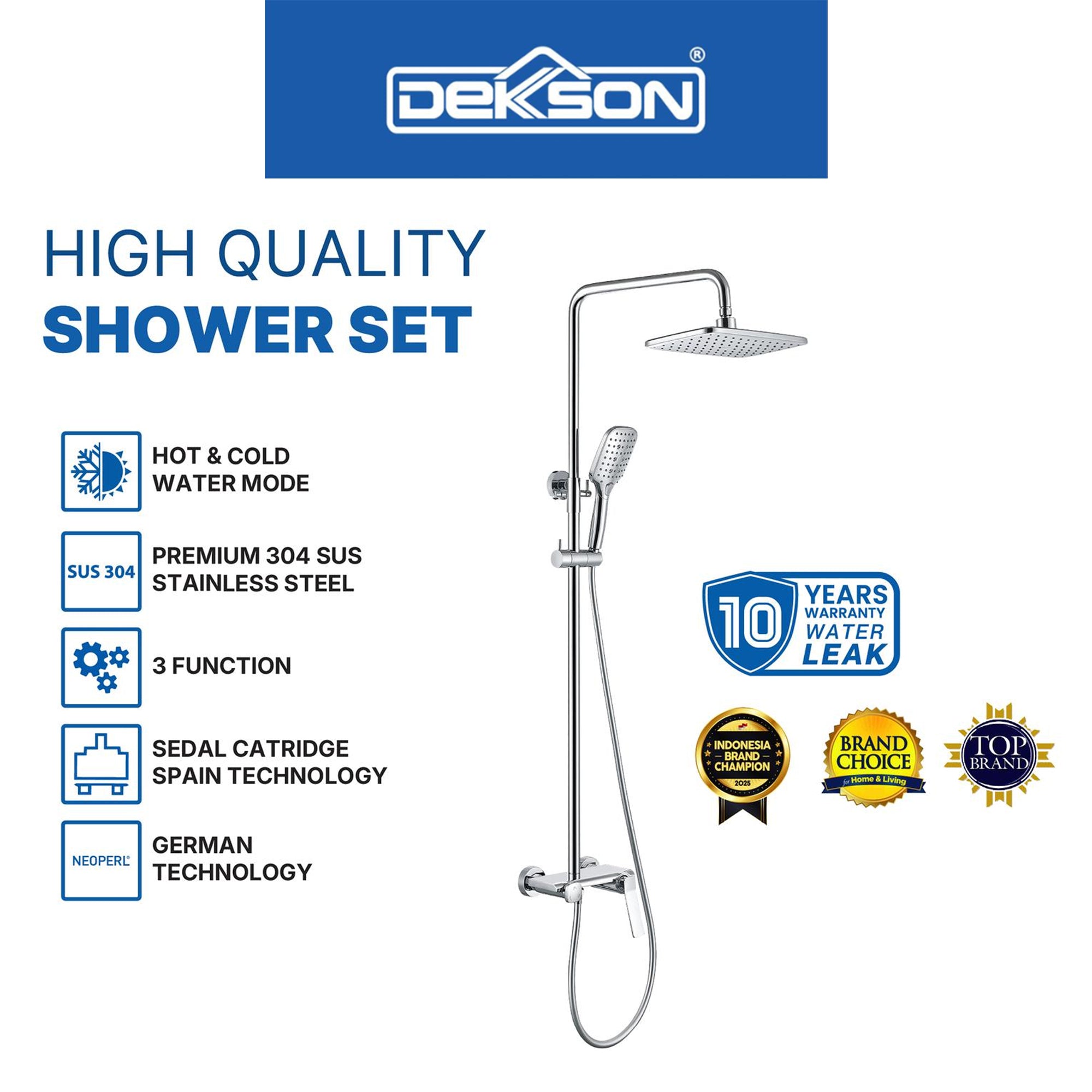 Shower Set Tiang Dekkson SS 8518-3 Keran Shower Mixer Air Panas Dingin Shower Tiang Set Keran Mandi Kran Panas Dingin