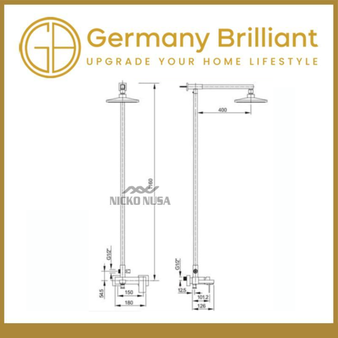 Shower Tiang Set Germany Brilliant GBV1899F Shower Kamar Mandi Air Panas Dingin