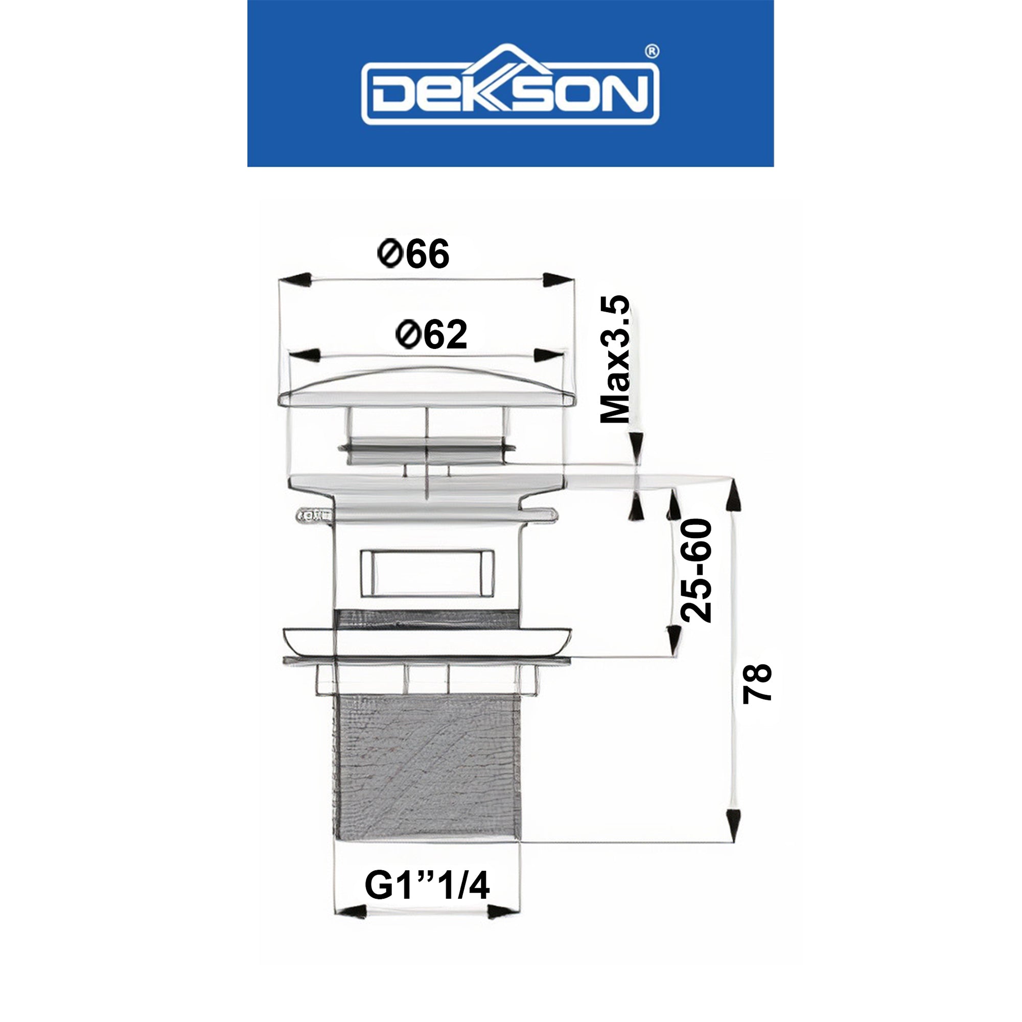 Waste Fitting Pop-Up Dekkson WF 8002 Chrome Polish Afur lubang Pembuangan Air Wastafel Drain Waste Fitting